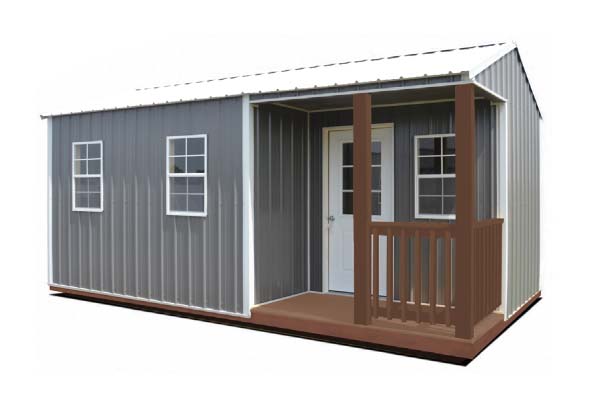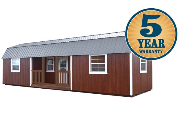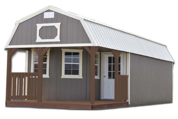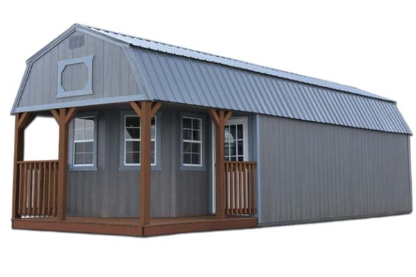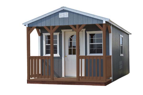 The Lofted Barn Cabin is available in 10' and 12' widths. It combines the best features of the lofted barn and cabin. All models feature a loft, a 9-lite door, three 2' x 3' windows, and a front porch.