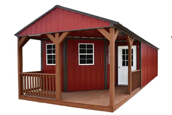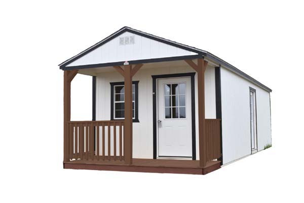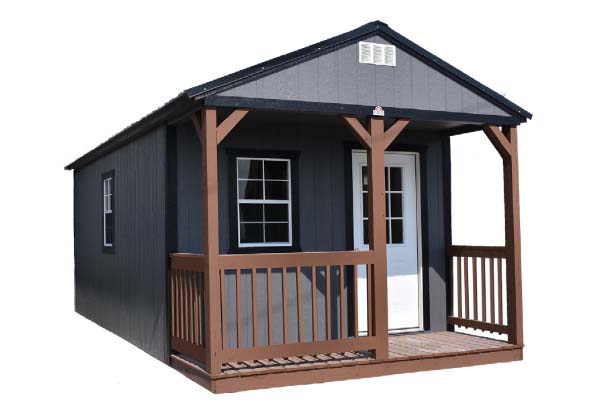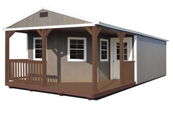 The Cabin comes standard with a 4 deep front porch with rails. Porch depth is included in length measurement. Side Cabins come standard with a 4 porch on the side, with variable placement options.