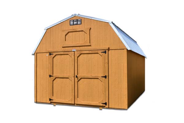 The Lofted Barn is our most popular barn. It is available in 8', 10' and 12' widths (14' & 16' available in some areas, based on hauling restrictions). The 8'-side model features a single wood door, the larger models include a double wood door (shown). All models come with a convenient loft that provides additional upper storage. Windows are not included.